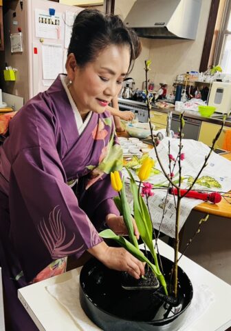 職員の方が桃の花と菜の花をいけてくれました。